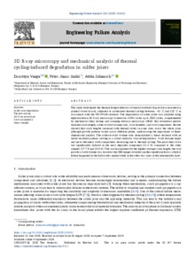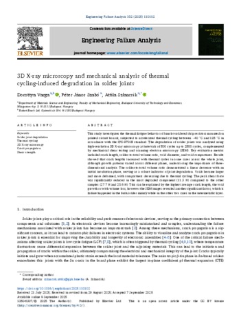 Varga, Dorottya and Szabó, Péter János and Szlancsik, Attila (2025) 3D X-ray microscopy and mechanical analysis of thermal cycling-induced degradation in solder joints. ENGINEERING FAILURE ANALYSIS, 182. No.-110102. ISSN 1350-6307 (In Press)