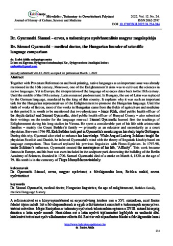 Szabó, Attila (2022) Dr. Gyarmathi Sámuel – orvos, a tudományos nyelvhasonlítás magyar megalapítója. KALEIDOSCOPE: MŰVELŐDÉS- TUDOMÁNY- ÉS ORVOSTÖRTÉNETI FOLYÓIRAT, 12 (24). pp. 234-244. ISSN 2062-2597