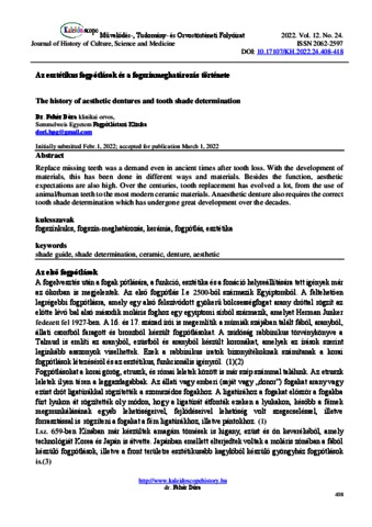 Fehér, Dóra (2022) Az esztétikus fogpótlások és a fogszínmeghatározás története. KALEIDOSCOPE: MŰVELŐDÉS- TUDOMÁNY- ÉS ORVOSTÖRTÉNETI FOLYÓIRAT, 12 (24). pp. 408-418. ISSN 2062-2597