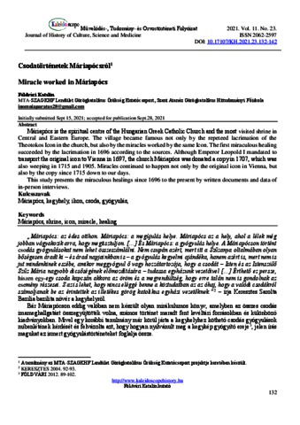 Földvári, Katalin (2021) Csodatörténetek Máriapócsról. KALEIDOSCOPE: MŰVELŐDÉS- TUDOMÁNY- ÉS ORVOSTÖRTÉNETI FOLYÓIRAT, 11 (23). pp. 132-142. ISSN 2062-2597