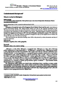 Uncontrolled Keywords: Máriapócs, kegyhely, ikon, csoda, gyógyulás,