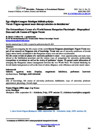 Kovács I., Gábor (2021) Egy világhírű magyar fiziológus különös pályája : Verzár Frigyes egyetemi tanár életrajzi adattára és életútleírása. KALEIDOSCOPE: MŰVELŐDÉS- TUDOMÁNY- ÉS ORVOSTÖRTÉNETI FOLYÓIRAT, 11 (23). pp. 260-276. ISSN 2062-2597