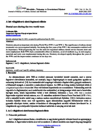 Goldmann, Júlia (2021) A két világháború alatti fogászati ellátás. KALEIDOSCOPE: MŰVELŐDÉS- TUDOMÁNY- ÉS ORVOSTÖRTÉNETI FOLYÓIRAT, 11 (23). pp. 203-224. ISSN 2062-2597