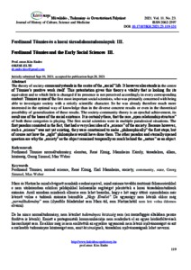 Kiss, Endre (2021) Ferdinand Tönnies és a korai társadalomtudományok III. KALEIDOSCOPE: MŰVELŐDÉS- TUDOMÁNY- ÉS ORVOSTÖRTÉNETI FOLYÓIRAT, 11 (23). pp. 119-131. ISSN 2062-2597