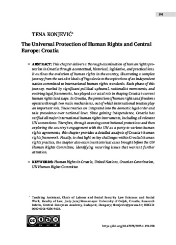 Konjević, Tena (2025) The Universal Protection of Human Rights and Central Europe: Croatia. CENTRAL EUROPEAN JOURNAL OF COMPARATIVE LAW, 6 (1). pp. 191-228. ISSN 2732-0707