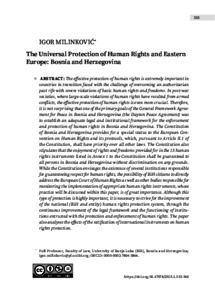 The effective protection of human rights is extremely important in countries in transition faced with the challenge of overcoming an authoritarian past rife with severe violations of basic human rights and freedoms. In post-war societies, where large-scale violations of human rights have resulted from armed conflicts, the effective protection of human rights is even more crucial. Therefore, it is not surprising that one of the primary goals of the General Framework Agreement for Peace in Bosnia and Herzegovina (the Dayton Peace Agreement) was to establish an adequate legal and institutional framework for the enforcement and protection of human rights in Bosnia and Herzegovina. The Constitution of Bosnia and Herzegovina provides for a special status to the European Convention on Human Rights and its protocols, which, pursuant to Article II.1 of the Constitution, shall have priority over all other laws. The Constitution also stipulates that the enjoyment of rights and freedoms provided for in the 15 human rights instruments listed in Annex 1 to the Constitution shall be guaranteed to all persons in Bosnia and Herzegovina without discrimination on any grounds. While the Constitution envisages the existence of several institutions responsible for guaranteeing respect for human rights, the possibility of BiH citizens to directly address the European Court of Human Rights as well as other bodies responsible for monitoring the implementation of appropriate human rights instruments, whose practice will be discussed within this paper, is of great importance. Although this type of protection is highly important, it is necessary to strive for the improvement of the national (BiH and entity) human rights protection system, through the continuous improvement of the legal framework and the functioning of institutions entrusted with the protection and enforcement of human rights. The paper also analyses the effects of the ratification of international instruments on human rights protection.