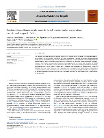 Máthé, Marcell Tibor and Éber, Nándor and Buka, Ágnes and Nishikawa, Hiroya and Araoka, Fumito and Jákli, Antal and Salamon, Péter (2025) Reorientation of ferroelectric nematic liquid crystals under out-of-plane electric and magnetic fields. JOURNAL OF MOLECULAR LIQUIDS, 428. No.-127525. ISSN 0167-7322