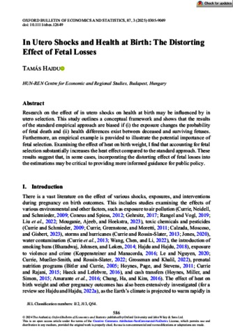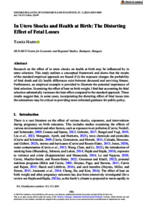 Hajdu, Tamás (2025) In Utero Shocks and Health at Birth : The Distorting Effect of Fetal Losses. OXFORD BULLETIN OF ECONOMICS AND STATISTICS, 87 (3). pp. 586-612. ISSN 0305-9049