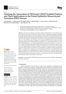 Kurilla, Anita and László, Loretta and Takács, Tamás and Tilajka, Álmos and Lukács, Laura and Novák, Julianna and Pancsa, Rita and Buday, László and Vas, Virág (2023) Studying the Association of TKS4 and CD2AP Scaffold Proteins and Their Implications in the Partial Epithelial–Mesenchymal Transition (EMT) Process. INTERNATIONAL JOURNAL OF MOLECULAR SCIENCES, 24 (20). No.-15136. ISSN 1661-6596
