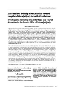 Sátoraljaújhelyen a haszid zsidó közösség vezetője, egyben a szatmári haszid dinasztia megala-pítója Teitelbaum Mózes volt, akit gyógyításai révén Csodarabbi néven emlegettek. Tanácsainak köszönhetően hamar ismertté vált, így halála után mind többen keresték fel sírját hazánkból és a határon túlról. A rabbi leszármazottai a szatmári haszidok, akik már a Kádár-korban elkezdték lá-togatni a Csodarabbi sírját, majd az 1990-es évektől a látogatások tömegessé váltak. Az elmúlt harminc évben a haszid zsidó látogatók száma háromezerről nyolcvanezerre ugrott. A zsidó turisták harmada évente kétszer (tavasszal és nyáron) érkezik a városba. A megnövekedett turistaszámmal sem a szervezők, sem a város nem számolt. 2024-ben Sátoraljaújhelyen szálláshelybővítés indult, és a beruházások keretében a zsidó épített örökség egy része is (zsinagóga, imaház) megújult. A zsidó turisták beutaztatását, elszállásolását és ellátását a 2010-es évektől külföldi és helyi szerve-zők végzik. Jelen kutatás célja annak meghatározása, hogy fenntartható-e a turistaszám-növekedés a városban vagy a régi zsidó temető megmarad annak, ami ma, a kelet-közép-európai térség haszid zarándokhelyeinek egyike. | The leader of the Hasidic Jewish community in Sátoraljaújhely, the founder of the Hasidic dynasty of Szatmár, was Mózes Teitelbaum, who was known as the Miracle Rabbi for his healings. He quickly became known for his help and advice, and even after his death, people from Hungary and beyond the border visited his grave. The descendants of the rabbi are the Hasids of Szatmár, who began to show interest in the grave of the Miracle Rabbi during the Kádár era, and visits increased from the 1990s. In the past thirty years, the number of Hasidic Jewish visitors has soared from three thousand to eighty thousand. The results show that one third of Jewish tourists come to the city twice a year (in spring and summer). Neither the organizers nor the city had anticipated these increased numbers. Based on the qualitative results of 2024, accommodation expansion has begun in Sátoraljaújhely, and part of the Jewish-built heritage is also being renovated (synagogue, prayer house). Foreign and local organizers arrange the entry, accommodation and catering, for Jewish tourists since the 2010s. The aim of this research is to determine whether the increase in the number of tourists in the city is sustainable, or whether the old Jewish cemetery will remain an important Hasidic pilgrimage site in Central and Eastern Europe.