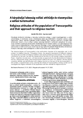 Tóth, Attila and Gyuricza, László (2025) A kárpátaljai lakosság vallási attitűdje és viszonyulása a vallási turizmushoz = Religious attitudes of the population of Transcarpathia and their approach to religious tourism. TURIZMUS BULLETIN, 25 (3). pp. 50-59. ISSN 1416-9967