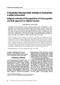 Kárpátalja történelmi öröksége a lakosság multietnikus jellege, s ezzel összefüggésben a vallási sokszínűsége. A történelem során a felekezetek békés együttéléséből is fakadóan számos vallási hagyomány, illetve szakrális építészeti emlék őrződött meg, amelyek nemcsak a korábbi idők lenyomatai, hanem a ma is erősen vallásos lakosság életének is színteréül szolgálnak. Az orosz-ukrán konfliktus lezárását követő béke lehetőséget teremt többek között a jó adottságokkal bíró vallási turizmus fejlesztéséhez. Ehhez azonban szükséges a helyi népesség pozitív hozzáállása és azonosulása a vallási turizmussal. Ennek kapcsán egy egész Kárpátalját átfogó kérdőíves felméréssel kutatjuk a lakosság vallási attitűdjét és a vallási turizmushoz való viszonyulását. | The historical legacy of Transcarpathia is the multi-ethnic character of its population and, in this context, its religious diversity. Throughout history, the peaceful coexistence of different religions has preserved a number of religious traditions and sacred architectural monuments. This is not only a testimony to the past, but also the background to the life of a still strongly religious population. Peace – hopefully, to come soon – will also provide an opportunity for the development of religious tourism, among other things, which would be well-suited to the area. This, however, will also require a positive attitude and identification with religious tourism on the part of the local population. In this context, a questionnaire survey covering the whole of Transcarpathia is being carried out to investigate the religious attitudes of the population and their attitude to religious tourism.