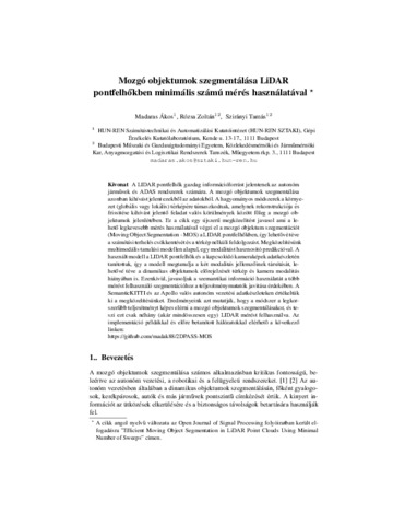 | Additional Information: | A cikk angol nyelvű változata az Open Journal of Signal Processing folyóiratban került elfogadásra ”Efficient Moving Object Segmentation in LiDAR Point Clouds Using Minimal Number of Sweeps” címen (https://doi.org/10.1109/OJSP.2025.3532199 [35740965]. |