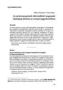 Az embercsempészés európai szintű jelenségének kriminológiai és büntetőeljárási jogi vizsgálata a kriminálpolitikai változások miatt aktuális. A nemzetközi dokumentumok elvárásainak bemutatását követően ismertetjük az Országos Kriminológiai Intézetben folytatott 2024. évi kutatásunk eredményeit. Az embercsempészek által szállított személyek eljárási helyzetére vonatkozóan kérdéseket tettünk fel az Eurojuston keresztül az EU tagállamai számára, továbbá az Igazságügyi Minisztériumon keresztül a Legicoop-hálózatot is megkerestük. Tanulmányunkban a tizenöt európai országból érkezett válaszok bemutatása mellett a magyar jogelmélet és joggyakorlat megközelítéseinek összegzése olvasható. | The criminological and criminal procedural approach to the phenomenon of migrant smuggling at the European level is topical due to changes in criminal policy. After presenting the expectations of international documents, we present the results of our research conducted at the National Institute of Criminology in 2024. We asked EU member states via Eurojust questions regarding the procedural situation of persons transported by smugglers. We also contacted the Legicoop network through the Ministry of Justice. In addition to presenting the responses received from fifteen European countries, our study summarizes the approaches of Hungarian legal theory and jurisprudence.