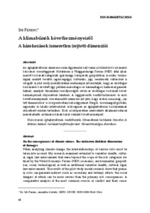 Az éghajlatváltozás elemzése során figyelembe kell venni a különböző kockázatok kölcsönös összefüggéseit. Kutatásom a Világgazdasági Fórum (WEF) által alkalmazott kockázati kategóriák (gazdasági, környezeti, geopolitikai, szociális, technológiai) mellett további (egészségügyi, kulturális, jogi, rendészeti) változókat is vizsgált. A pilot study modellkutatási eredményei azt mutatják, hogy az elsődleges kockázatok közvetett (így például másodlagos és harmadlagos) hatásokat generálhatnak, amelyek társadalmi veszélyességük révén az elsődleges kockázati következményeknél súlyosabbak lehetnek. A leggyakoribb konfliktusforrások és azok következményeinek összehasonlító elemzése azt jelzi, hogy ezekre a ma még „rejtett dimenziókra” is összpontosítani kell a figyelmet. Sürgős, összehangolt globális, regionális és lokális intézkedések szükségesek az éghajlatváltozás kockázatainak elviselhető szinten tartásához. Ezek a környezethez adekvátabb alkalmazkodással mérsékelhetik a klímakockázati károk várható következményeit. | When analyzing climate change, the interrelationships of various risks must be taken into account. My research examined extended to variables (health, cultural, legal, law enforcement) that were beyond the scope of the risk categories defined by the World Economic Forum (WEF) (economic, environmental, geopolitical, social, technological) as well as additional variables (health, cultural, legal, law enforcement). The results of the pilot study model research show that primary risks can generate indirect (such as secondary and tertiary) effects, the social dangers of which can be more serious than the primary risk consequences. A comparative analysis of the most common sources of conflict and their consequences indicates that attention should also be focused on these “hidden dimensions” today. Urgent, coordinated global, regional and local measures are required to keep the risks of climate change at a tolerable level. These can mitigate the expected consequences of climate risk damage by more adequately adapting to the environment.