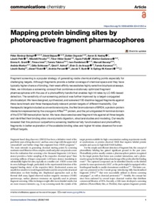 Ábrányi-Balogh, Péter and Bajusz, Dávid and Orgován, Zoltán and Keeley, Aaron Brian and Petri, László and Péczka, Nikolett and Szalai, Tibor Viktor and Pálfy, Gyula and Gadanecz, Márton and Grant, Emma K. and Imre, Tímea and Takács, Tamás and Randelovic, Ivan and Baranyi, Marcell and Marton, András Dénes and Schlosser, Gitta (Vácziné) and Ashraf, Qirat F. and de Araujo, Elvin D. and Karancsi, Tamás and Buday, László and Tóvári, József and Perczel, András and Bush, Jacob T. and Keserű, György Miklós (2024) Mapping protein binding sites by photoreactive fragment pharmacophores. COMMUNICATIONS CHEMISTRY, 7 (1). No. 168. ISSN 2399-3669