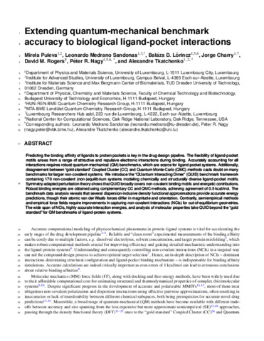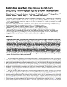 Puleva, Mirela and Medrano Sandonas, Leonardo and Lőrincz, Balázs D. and Charry, Jorge and Rogers, David M. and Nagy, Péter R. and Tkatchenko, Alexandre (2025) Extending quantum-mechanical benchmark accuracy to biological ligand-pocket interactions. NATURE COMMUNICATIONS. ISSN 2041-1723 (In Press)