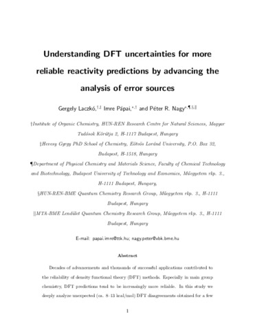 Laczkó, Gergely and Pápai, Imre and Nagy, Peter (2025) Understanding DFT uncertainties for more reliable reactivity predictions by advancing the analysis of error sources. JOURNAL OF CHEMICAL THEORY AND COMPUTATION. ISSN 1549-9618 (In Press)