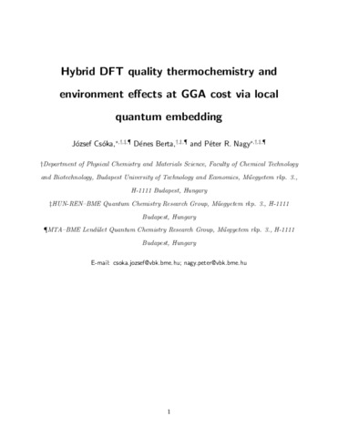 Csóka, József and Berta, Dénes and Nagy, Péter R. (2025) Hybrid DFT quality thermochemistry and environment effects at GGA cost via local quantum embedding. JOURNAL OF CHEMICAL THEORY AND COMPUTATION. ISSN 1549-9618 (In Press)