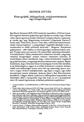 Monok, István (2025) Könyvgyűjtők, bibliográfusok, irodalomtörténészek vagy hungarológusok? = Book Collectors, Bibliographers, Literary Historians or Hungarologists? In: „Hic discursus de praeteritis, praesentibus et futuris”. Tanulmányok Tüskés Gábor 70. születésnapjára / Beiträge zum 70. Geburtstag von Gábor Tüskés. Reciti Kiadó, Budapest, pp. 588-591. ISBN 9789636720315, 9789636720322