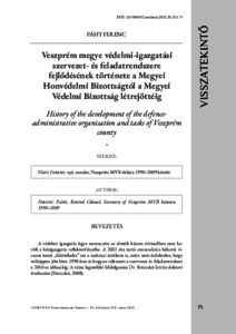 Páhy, Ferenc (2025) Veszprém megye védelmi-igazgatási szervezet- és feladatrendszere fejlődésének története a Megyei Honvédelmi Bizottságtól a Megyei Védelmi Bizottság létrejöttéig = History of the development of the defenceadministrative organisation and tasks of Veszprém county. COMITATUS: ÖNKORMÁNYZATI SZEMLE, 35 (253). pp. 75-84. ISSN 1215-315X