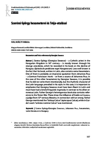 Halmágyi, Miklós (2025) Szerémi György hexameterei és Trója-utalásai. IRODALOMTÖRTÉNETI KÖZLEMÉNYEK, 129 (3). pp. 357-364. ISSN 0021-1486