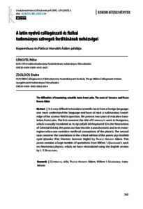 Lengyel, Réka and Zsoldos, Endre (2025) A latin nyelvű csillagászati és fizikai tudományos szövegek fordításának nehézségei : Kopernikusz és Pálóczi Horváth Ádám példája. IRODALOMTÖRTÉNETI KÖZLEMÉNYEK, 129 (3). pp. 365-381. ISSN 0021-1486