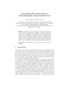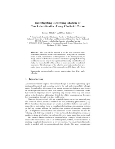 Mihályi, Levente and Takács, Dénes (2024) Investigating Reversing Motion of Truck-Semitrailer Along Clothoid Curve. LECTURE NOTES IN MECHANICAL ENGINEERING. pp. 686-692. ISSN 2195-4356