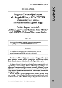 Zongor, Gábor (2025) Magyary Zoltán-díjat kapott dr. Szegvári Péter, a COMITATUS Önkormányzati Szemle Szerkesztőbizottságának tagja = Dr Péter Szegvári received the Zoltán Magyary Award Editorial Board Member of the COMITATUS Local Government Review. COMITATUS ÖNKORMÁNYZATI SZEMLE, 35 (253). pp. 103-106. ISSN 1215315X