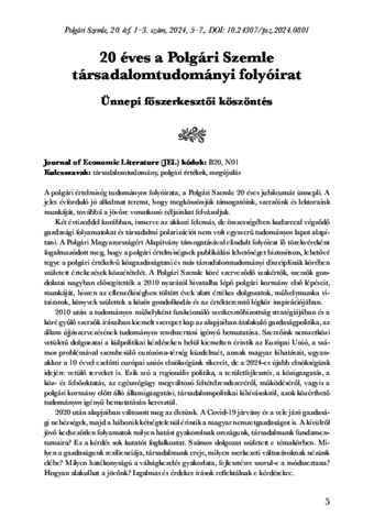Lentner, Csaba (2024) 20 éves a Polgári Szemle társadalomtudományi folyóirat : Ünnepi főszerkesztői köszöntés. POLGÁRI SZEMLE, 20 (1-3). pp. 5-7. ISSN 1786-6553 (print); 1786-8823 (online)
