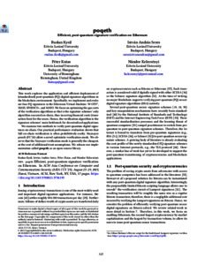 Kysil, Ruslan and Seres, István András and Kutas, Péter and Kelecsényi, Nándor (2025) poqeth: Efficient, post-quantum signature verification on Ethereum. In: Proceedings of the 20th ACM Asia Conference on Computer and Communications Security. Association for Computing Machinery (ACM), New York, pp. 327-343. ISBN 9798400714108