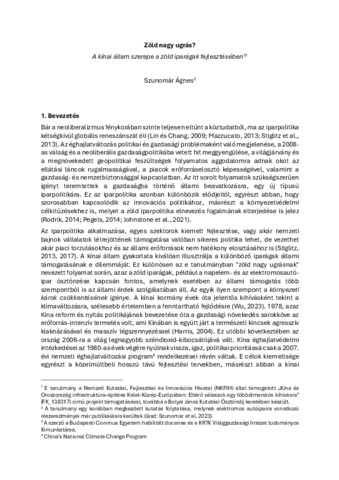 Szunomár Ágnes, Szunomár Ágnes (2025) Zöld nagy ugrás? : A kínai állam szerepe a zöld iparágak fejlesztésében. In: Trendek és töréspontok VI. : trendváltás és túlélés. Akadémiai Kiadó, Budapest, pp. 73-84. ISBN 9789636641122