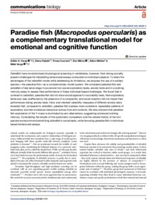 Varga, Zoltán K. and Pejtsik, Diána and Csorvási, Tímea and Mikics, Éva and Miklósi, Ádám and Varga, Máté (2025) Paradise fish (Macropodus opercularis) as a complementary translational model for emotional and cognitive function. Communications Biology, 8 (1). No. 1125. ISSN 2399-3642