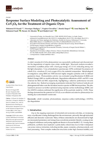 El Ouardi, Mohamed and Madigou, Véronique and Chevallier, Virginie and Haspel, Henrik and BaQaise, Amal and Saadi, Mohamed and Ahsaine, Hassan Ait and Arab, Madjid (2025) Response Surface Modeling and Photocatalytic Assessment of CoV2O6 for the Treatment of Organic Dyes. CATALYSTS, 15 (9). No. 908. ISSN 2073-4344