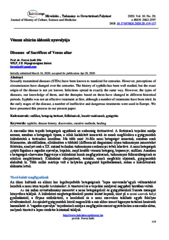 Forrai, Judit (2020) Vénusz oltárán áldozók nyavalyája. KALEIDOSCOPE: MŰVELŐDÉS- TUDOMÁNY- ÉS ORVOSTÖRTÉNETI FOLYÓIRAT, 10 (20). pp. 118-137. ISSN 2062-2597