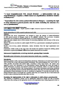 Lengyel, Ingrid Krisztina (2020) "A hazai betegtájékoztatás XXI. századi elvárásai - a tájékoztatáshoz való jog megvalósulásának vizsgálata a felnőtt háziorvosi alapellátásban (kérdőíves felmérés eredményeivel)". KALEIDOSCOPE: MŰVELŐDÉS- TUDOMÁNY- ÉS ORVOSTÖRTÉNETI FOLYÓIRAT, 10 (20). pp. 190-195. ISSN 2062-2597