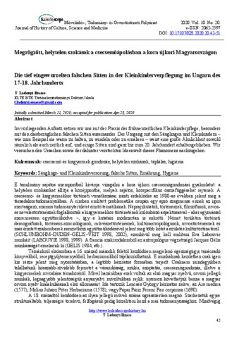 T. Ládonyi, Emese (2020) Megrögzött, helytelen szokások a csecsemőápolásban a kora újkori Magyarországon. KALEIDOSCOPE: MŰVELŐDÉS- TUDOMÁNY- ÉS ORVOSTÖRTÉNETI FOLYÓIRAT, 10 (20). pp. 42-51. ISSN 2062-2597