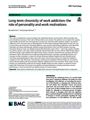 Kun, Bernadette and Kökönyei, Gyöngyi (2025) Long-term chronicity of work addiction: the role of personality and work motivations. BMC PSYCHOLOGY, 13. No. 578. ISSN 2050-7283.