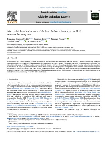 Pesthy, Zsuzsanna and Berta, Krisztina and Vékony, Teodóra and Németh, Dezső and Kun, Bernadette (2025) Intact habit learning in work addiction: Evidence from a probabilistic sequence learning task. ADDICTIVE BEHAVIORS REPORTS, 21. No. 100589. ISSN 23528532
