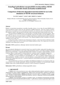 | Uncontrolled Keywords: | MEMS, poliszilícium, ortotróp anyagmodell, szemcse, MEMS, polysilicon, orthotropic material, transversal material, grain |