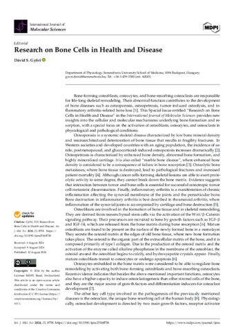 Győri, Dávid Sándor (2024) Research on Bone Cells in Health and Disease. INTERNATIONAL JOURNAL OF MOLECULAR SCIENCES, 25. No.-8758. ISSN 1661-6596