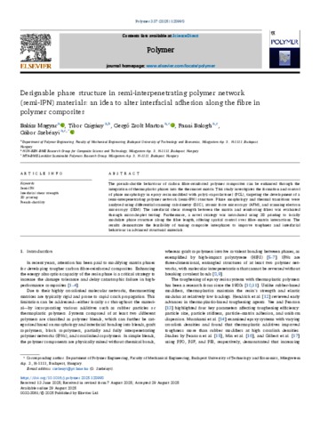 Magyar, Balázs and Czigány, Tibor and Marton, Gergő Zsolt and Balogh, Fanni and Szebényi, Gábor (2025) Designable phase structure in semi-interpenetrating polymer network (semi-IPN) materials: an idea to alter interfacial adhesion along the fibre in polymer composites. POLYMER, 337. No.-128998. ISSN 0032-3861