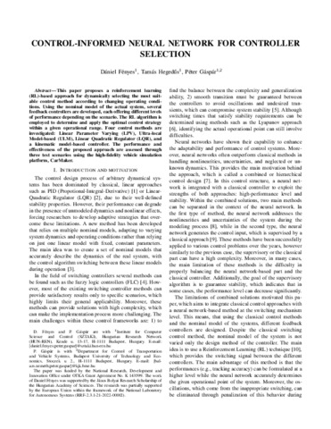 Fényes, Dániel and Hegedűs, Tamás and Gáspár, Péter (2025) Control-Informed Neural Network for Controller Selection. In: International Conference on Control, Decision and Information Technologies - 11th CoDIT 2025., 2025.07.14-17, Split, Horvátország. (In Press)