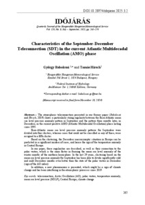 Babolcsai, György and Hirsch, Tamás (2025) Characteristics of the September-December Teleconnection (SDT) in the current Atlantic Multidecadal Oscillation (AMO) phase. IDŐJÁRÁS / QUARTERLY JOURNAL OF THE HUNGARIAN METEOROLOGICAL SERVICE, 129 (3). pp. 265-278. ISSN 0324-6329