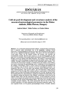 Dobos, András and Farkas, Réka and Dobos, Endre (2025) Cold-air pool development and covariance analysis of the measured meteorological parameters in the Mohos sinkhole, Bükk Plateau, Hungary. IDŐJÁRÁS / QUARTERLY JOURNAL OF THE HUNGARIAN METEOROLOGICAL SERVICE, 129 (3). pp. 279-306. ISSN 0324-6329