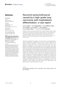 Csaba, Márton and Megyesfalvi, Zsolt and Báthory-Fülöp, László and Pintér, Tamás and Agócs, László and Döme, Balázs and Rényi-Vámos, Ferenc and Ghimessy, Áron Kristóf (2024) Recurrent pneumothoraces caused by a high-grade lung carcinoma with trophoblastic differentiation: a case report. Frontiers in Oncology, 14. ISSN 2234-943X