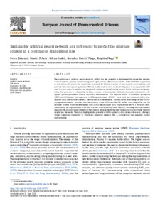 Záhonyi, Petra and Fekete, Dániel and Szabó, Edina and Nagy, Zsombor Kristóf and Nagy, Brigitta (2025) Explainable artificial neural network as a soft sensor to predict the moisture content in a continuous granulation line. EUROPEAN JOURNAL OF PHARMACEUTICAL SCIENCES, 212. No.-107173. ISSN 0928-0987
