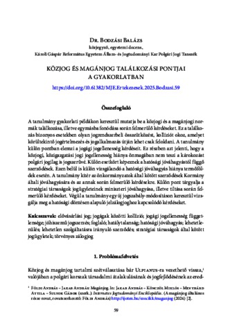 Bodzási, Balázs (2025) Közjog és magánjog találkozási pontjai a gyakorlatban = The intersection of public and private law in practice. In: Közjog és magánjog. JOGÁSZEGYLETI ÉRTEKEZÉSEK . Magyar Jogász Egylet, Budapest, pp. 59-104.
