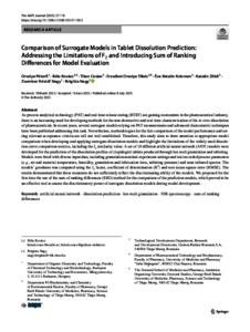 Péterfi, Orsolya and Kovács, Béla and Casian, Tibor and Tőkés, Erzsébet Orsolya and Kelemen, Éva Katalin and Zöldi, Katalin and Nagy, Zsombor Kristóf and Nagy, Brigitta (2025) Comparison of Surrogate Models in Tablet Dissolution Prediction: Addressing the Limitations of F₂ and Introducing Sum of Ranking Differences for Model Evaluation. AAPS JOURNAL, 27 (5). No.-118. ISSN 1550-7416