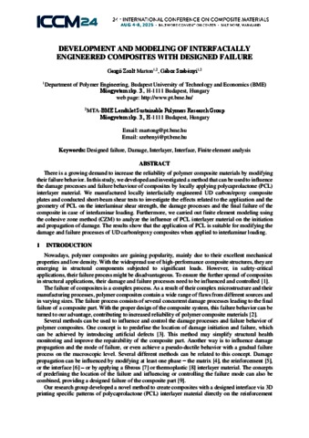 Marton, Gergő Zsolt and Szebényi, Gábor (2025) Development and modeling of interfacially engineered composites with designed failure. In: 4th International Conference on Composite Materials, 2025.08.04-2025.08.08., Baltimore.